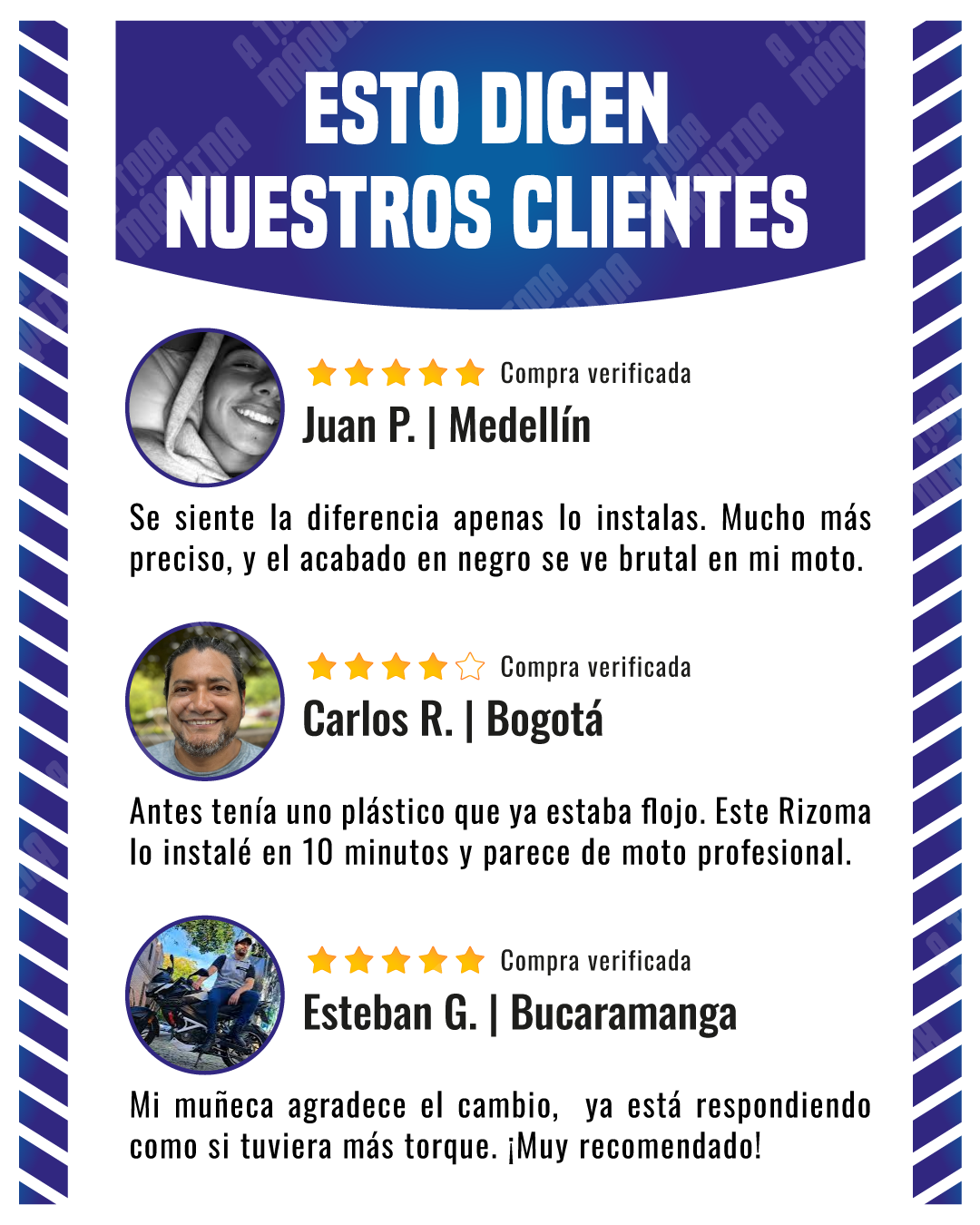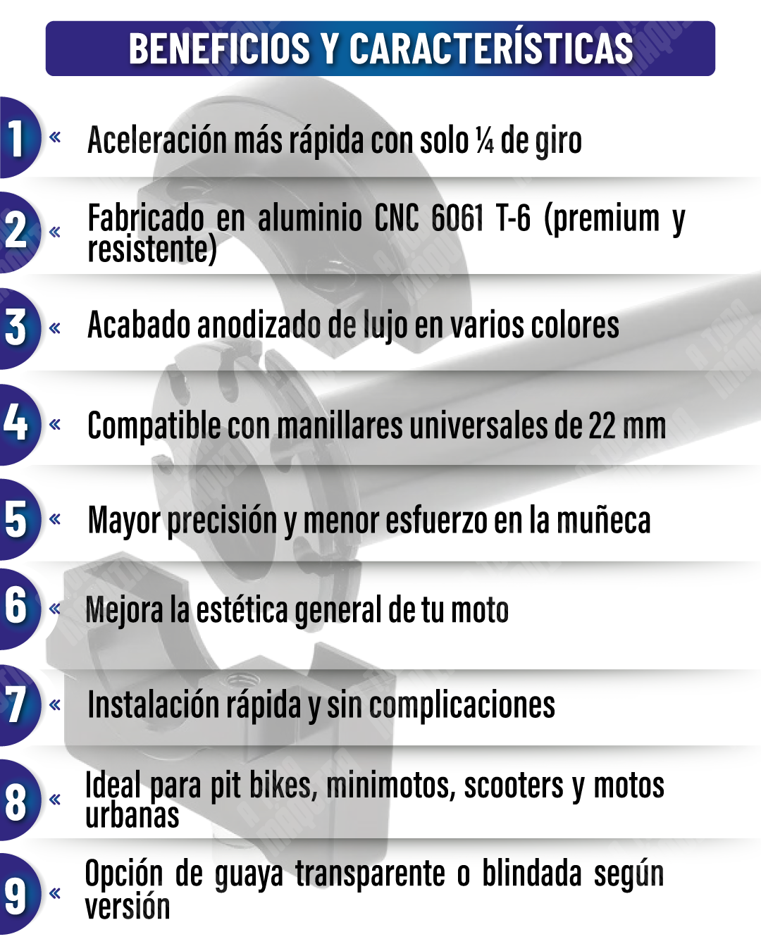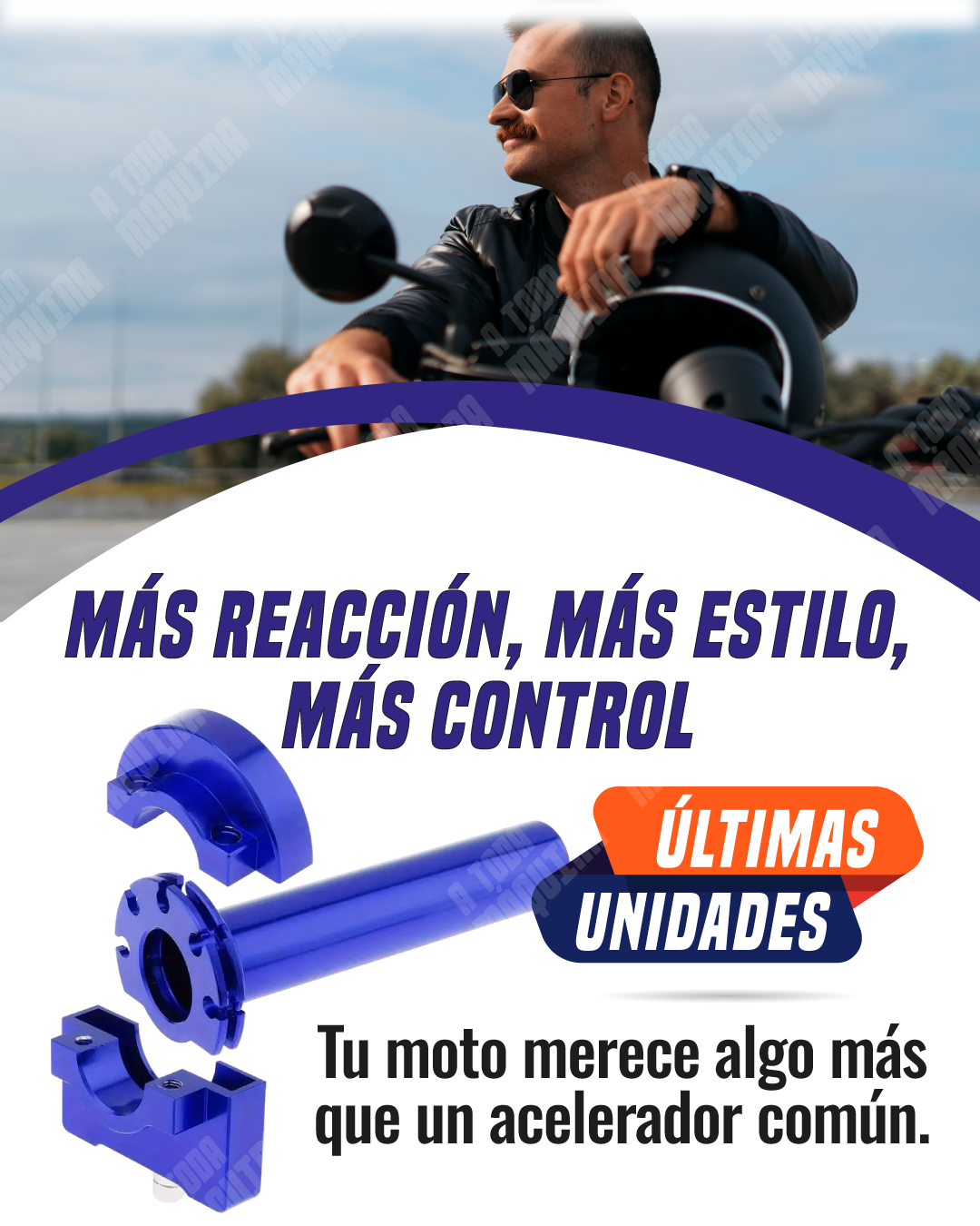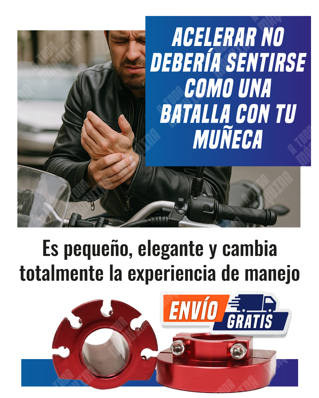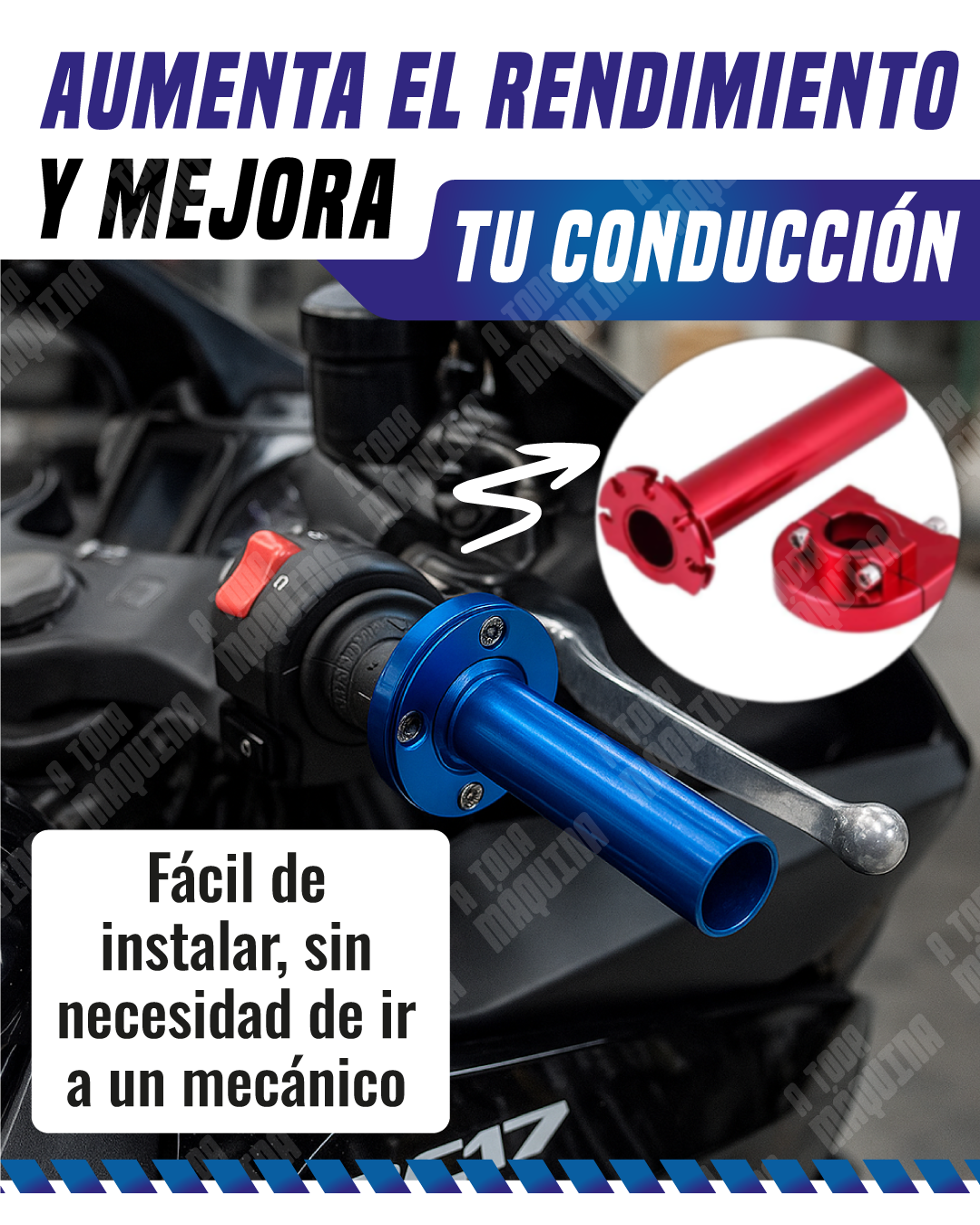 Este reduce el giro necesario a solo ¼ de vuelta, lo que permite una aceleración más rápida, precisa y con menos esfuerzo en la muñeca.